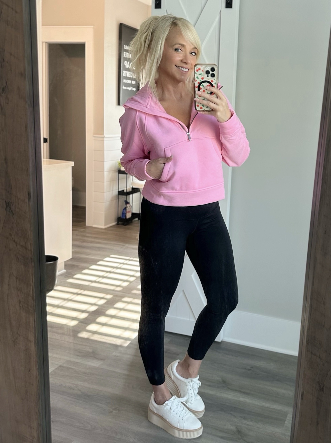 ✨ The Star of the Outfit: The Pink Half-Zip Sweatshirt